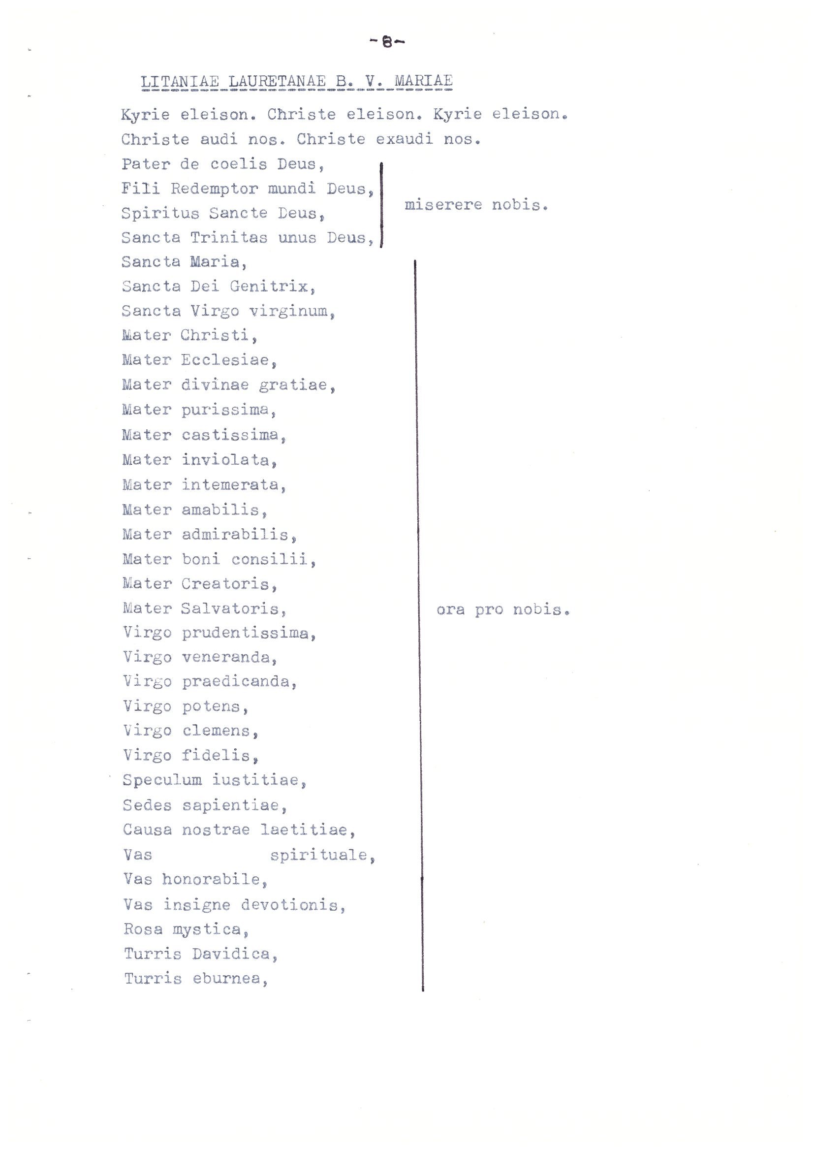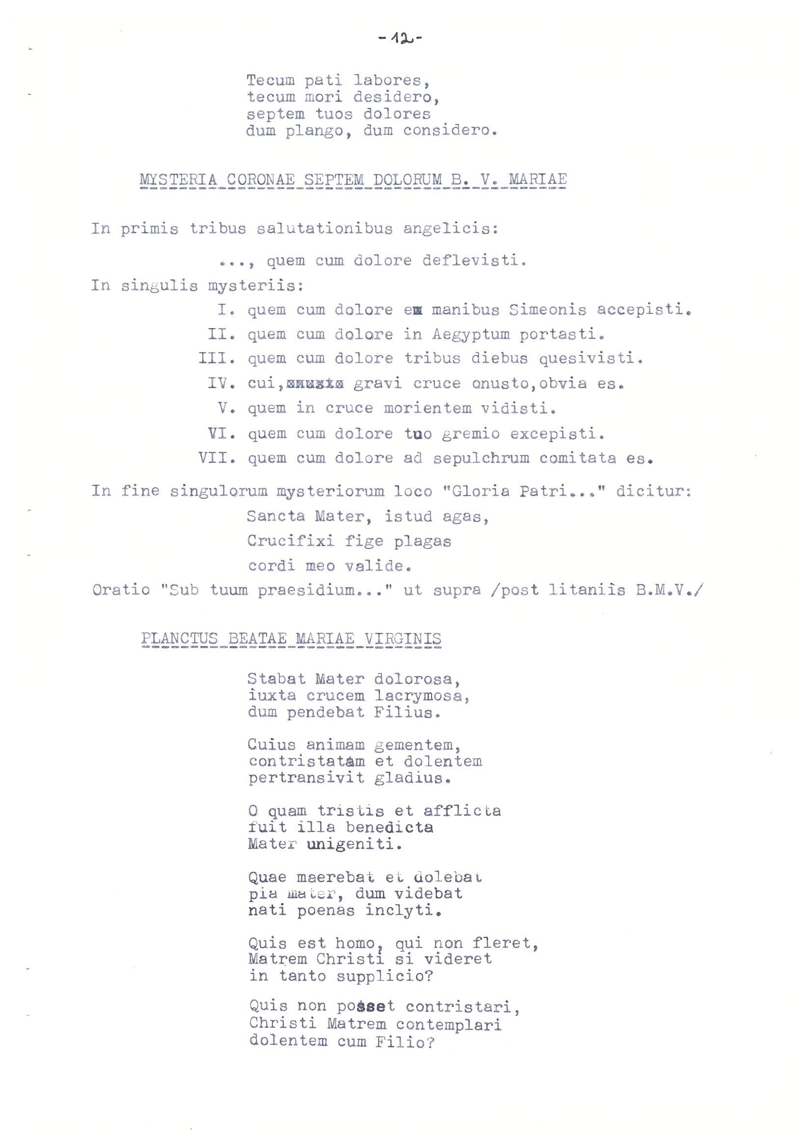 V řádové tradici se dochovalo množství mariánských modliteb (Litaniae laurentanae B. M. V., Antiphona ad B. V. Mariam, Ad B. M. V. dolorosam, Hymnus de septem doloribus B. M. V., Mysteria coronae septem dolorum B. M. V., Planctus B. M. V.), které naleznete v příloze.